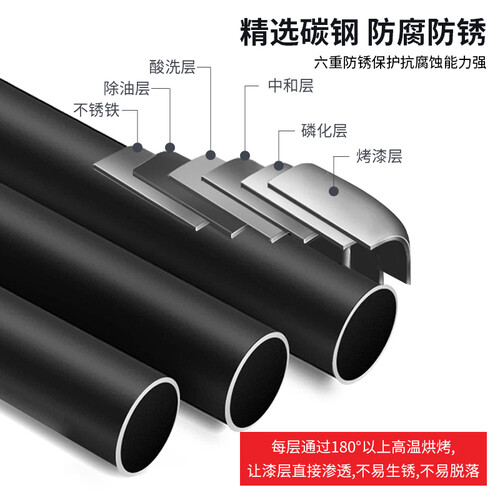 严选3个月新钢,韧性强,承重强,质地均匀。竹节管每25mm小节可调,螺旋链接管,链接更牢固,移动更方便。