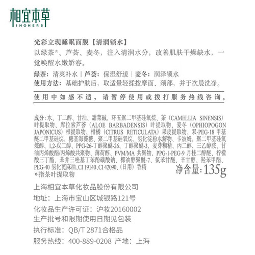 相宜本草光彩立现睡眠面膜,呈透明啫喱质地,清爽不腻,翌日清水洁面即可,让肌肤睡饱''美容觉''。