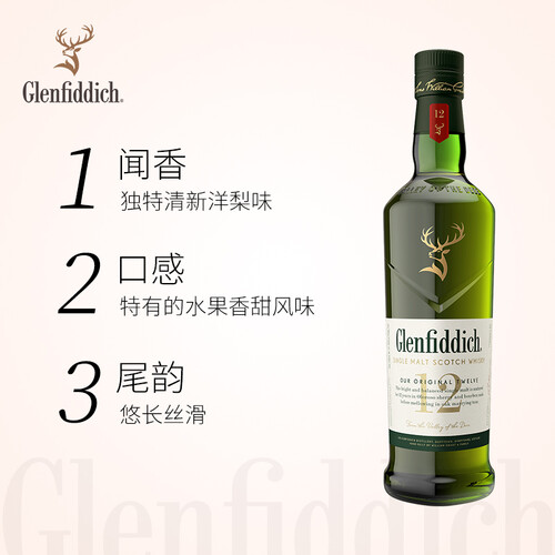 使用清冽甜美、富含矿物质的罗比杜泉水酿造的威士忌,经传统工艺酿造后,具有和谐的香气,清澈甜美的滋味,让人品之回味无穷。