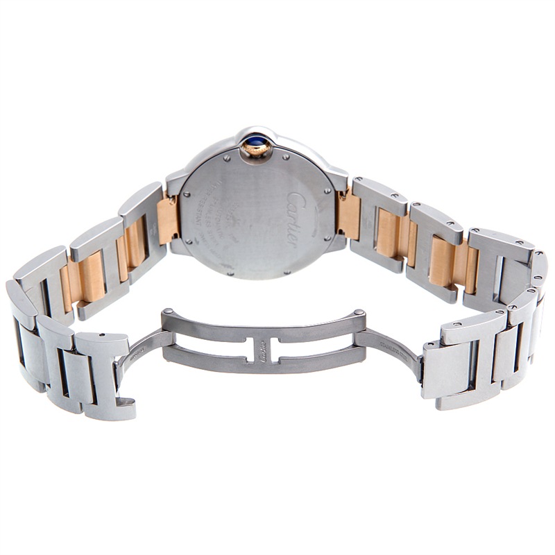 表镜采用人工合成的蓝宝石水晶玻璃,不锈钢表链,更加结实耐用。搭配乳白色雕纹表盘,剑形蓝钢指针,精美别致。