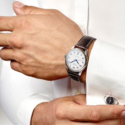 白色圆形表盘加持数字刻度,优雅时尚,复古意味浓厚,衬托出男士儒雅稳重的气质。搭配皮质表带,柔软细腻,佩戴舒适透气。