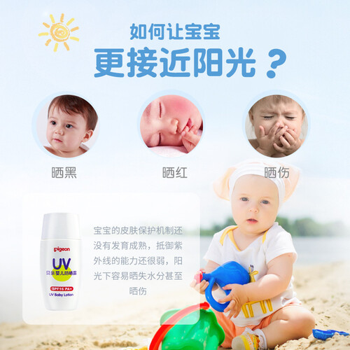 采用物理防晒配方,远离紫外线吸收剂,保护宝宝娇嫩肌肤。乳液质地,清爽不油腻,容易推开涂抹,易于吸收。