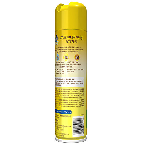 快速光亮,只需一喷一擦就起效。轻松去除各种灰尘污渍,多表面适用。采用典雅茉莉香氛,气味清新不刺鼻。光亮洁净,形成保护膜。