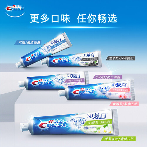 采用3D炫白因子能深层洁净牙缝,减少牙渍和牙菌斑的产生。细腻绵密的泡沫更能去除口腔异味,持久清新口气。