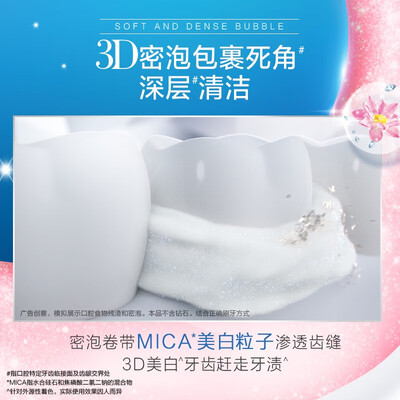 3D密泡泡直击黄渍,深层清洁不留死角,塑造出女神般炫白笑容;搭配清甜荷香膏体,令口腔清凉爽快,谈吐更加从容自信。