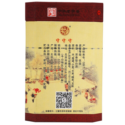 适合孝敬父母、馈赠亲友的浓香型白酒,包装独特,送礼体面。配合优质纯粮酿造,释放地道北京味。