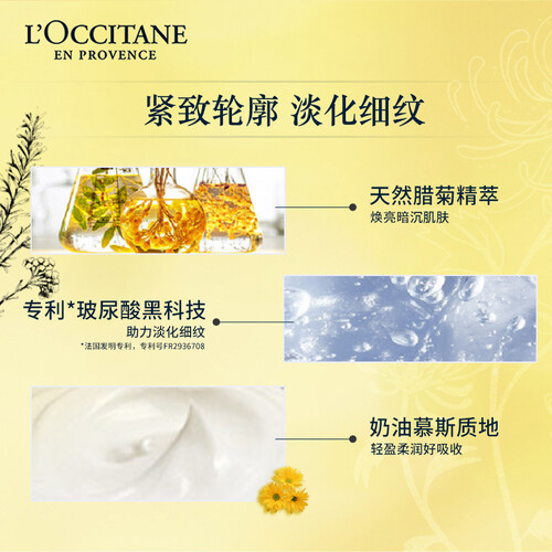 乳白霜体,质地幼滑轻盈,使用清爽不黏腻,毛孔能快速渗透吸收;蕴含蜡菊精华,有抗氧化功效,重拾您肌肤活力。