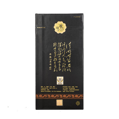 酒液莹澈透明,清香馥郁,入口香绵甜润,酒力强劲而无刺激性,使人心悦神怡。搭配优雅低调的礼盒装,更加彰显不凡气质。