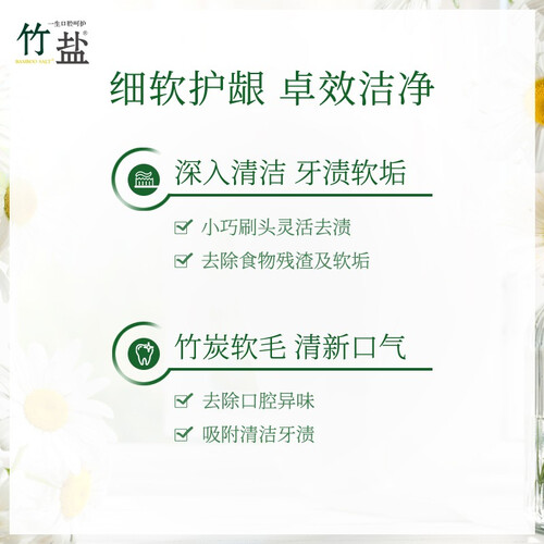 刷毛具有良好的弹性,不会损伤齿面,带来轻柔感,保护牙龈;末端软毛的直径很小,深入齿缝,清除顽固牙渍,拒绝口腔异味。