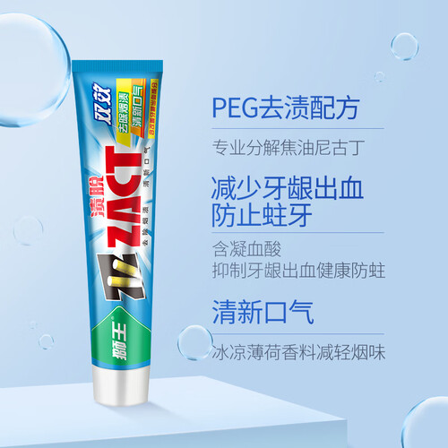 采用PEG去渍配方,专业分解焦油和尼古丁残留,去除烟渍,配合冰凉薄荷,净澈呼吸告别烟味困扰;舒缓牙龈出血,呵护口腔健康。