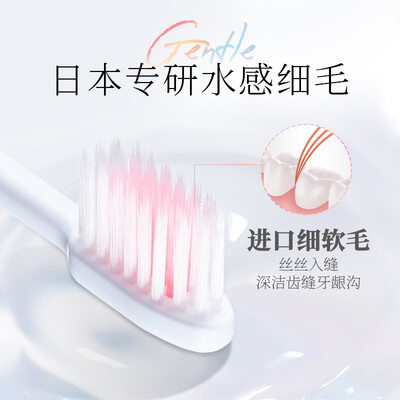 精选纤细软毛,深入去渍更加洁净,刷牙同时呵护牙龈。刷毛质地柔软,可以减少牙龈压力,灵活清洁口腔死角。