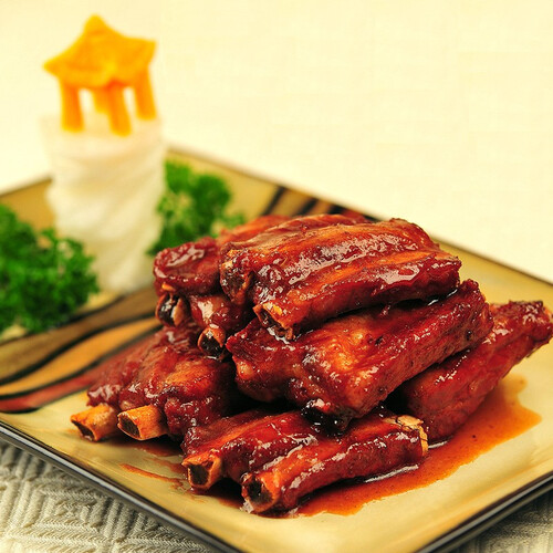 甄选新鲜排骨和多种优质配料,利用严苛工艺制作而成。百年陆稿荐,中华老字号口味。还利用红曲米给排骨着色,为排骨增添色泽。