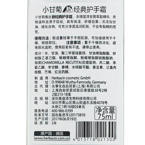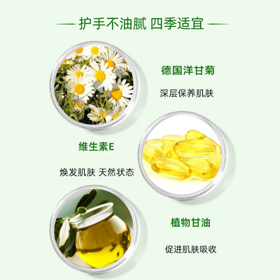 加入了洋甘菊的成分,滋润到每一处肌肤,点滴都是精粹。帮助手部锁住水分,带来水润的感觉,清爽养护。