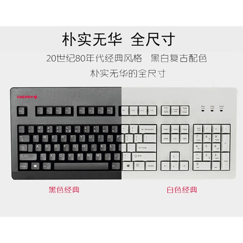 键盘采用有线连接的设计,快速传输无延时。全尺寸键盘,轻松应对工作和游戏的使用需要。经典复古的设计,别具一番韵味。