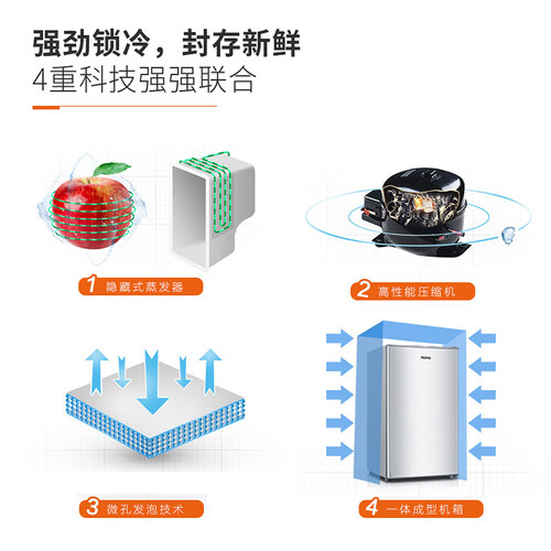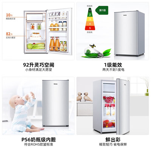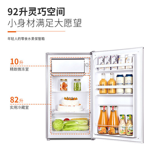 92升的灵巧空间满足单身年轻人的冷藏需求,小巧的机身设计不占空间。特制微冻室门盖有效锁住冷气,食物更保鲜。
