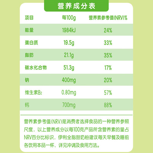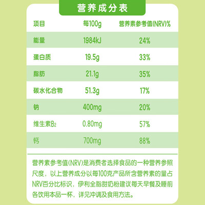 每100g含有700mg钙质,每日两杯,满足人体每日所需44%。富含维生素和蛋白质,营养全面。独立小条装,好喝又营养。