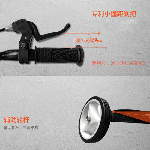 三角结构车身设计,骑行平稳不易侧翻,小握距刹把适合宝宝小手抓握,鞍座柔软透气,车座设有便捷把手,方便提拎。