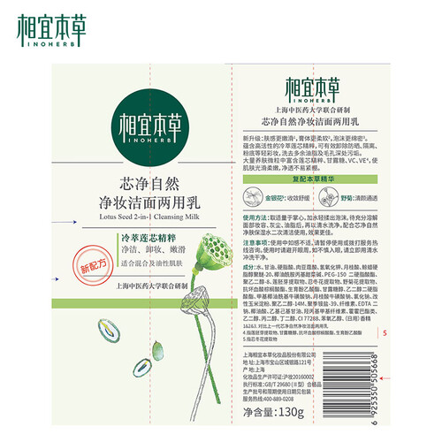 洁面卸妆二合一的洁面乳,日常淡妆也能清洁彻底,帮你节省更多洁面步骤。含有本草精华,清洁的同时还可以起到保湿效果。