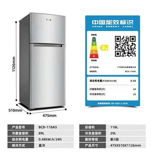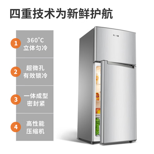 外观采用简约典雅的拉丝银设计,简约大气,展现立体质感,118L小容量设计租房家用均可;360度立体匀冷制冷强劲新鲜可靠。