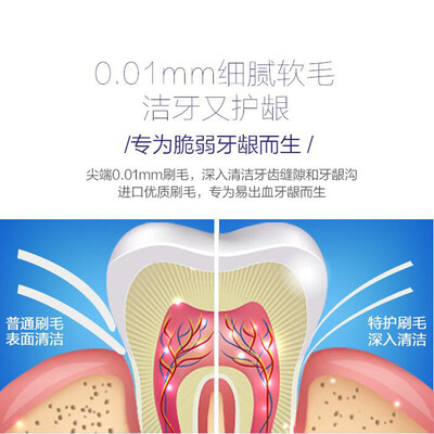 纤维弹性长颈,轻松深入难刷部位;多角度清扫隐藏缝隙,每颗牙齿享受精心照顾;特护刷毛,深入清洁齿缝和牙龈沟。