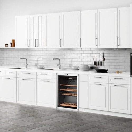 酒柜按照专业存储条件设计,适宜温度在6道18度之间,满足不同酒类存放。智能操控面板,使用方便快捷,轻松调温。