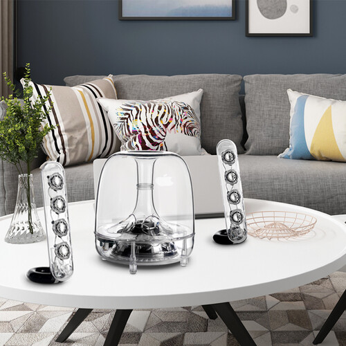 透明外观设计,卫星扬声器角度可随意调整,个性潮流。8单元全音域变频器,2个40mm大单元扬声器相互配合,音质清晰呈现。