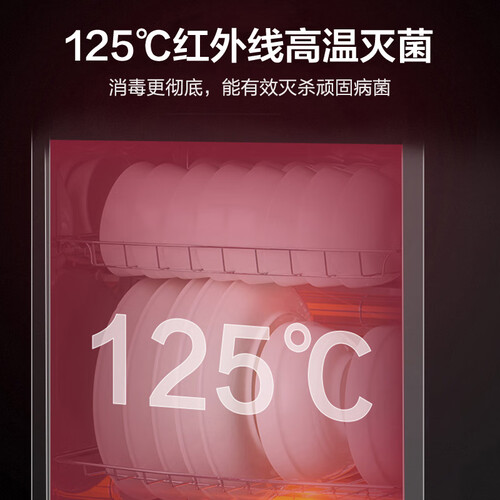 通过125℃红外线高温除菌,陶瓷、玻璃等材质可放心消毒。内胆采用不锈钢,360°反射,全覆盖不留死角。