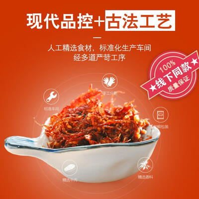 传统做法加上现代工艺结合在一起,肉香浓郁,丝丝美味,让你爱不释口。人工去筋去膜,更容易咀嚼,老少皆宜。