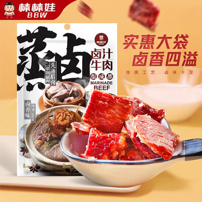 精选去筋除膜的鲜嫩牛肉作为原料,在浓郁卤汁中反复卤煮,肉质结构紧凑,鲜嫩多汁,油花分布均匀好吃看得见。
