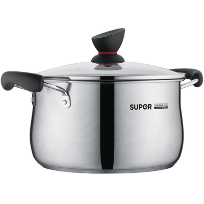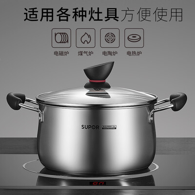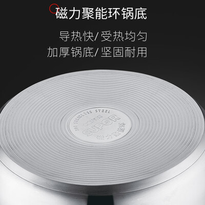 创新小红圈握点提示,易握不烫手,精致加厚不锈钢材质,厚重坚韧,经久耐用,磁力聚能环锅底,受热均匀。