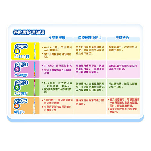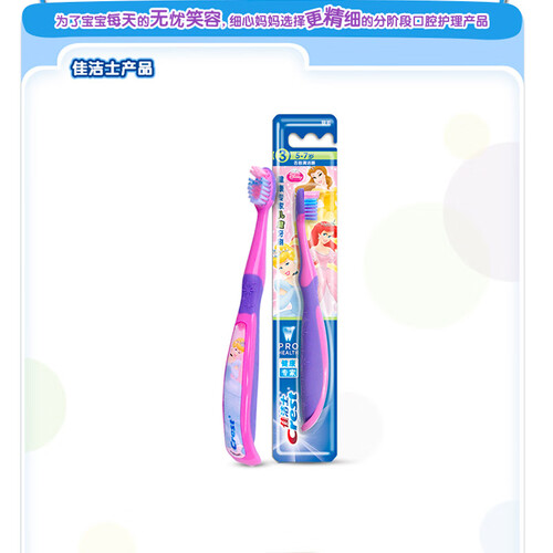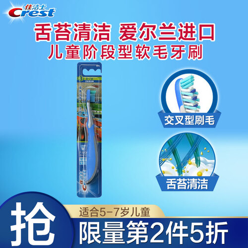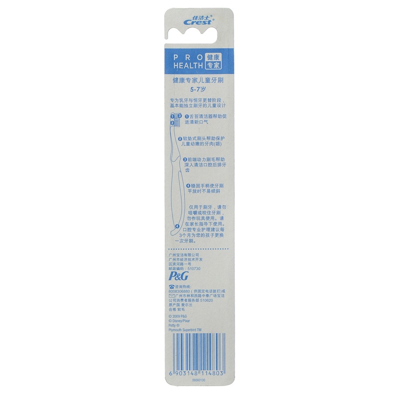 适合5-7岁宝宝,帮助完善自己的刷牙技术,带舌苔清洁器,清洁整个口腔、全面呵护健康,花纹包胶手柄易握又好看。