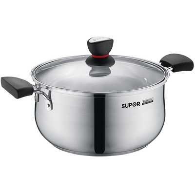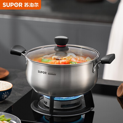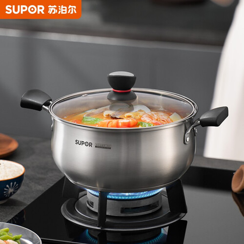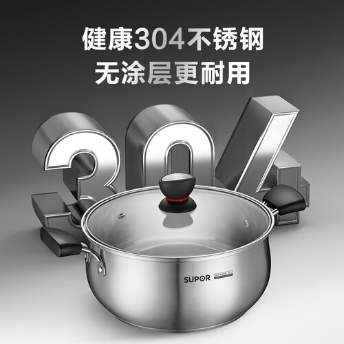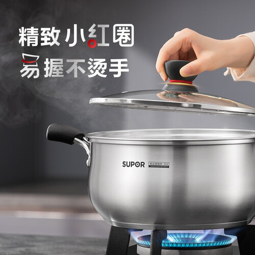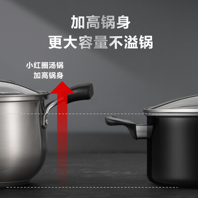 钢铝钢三层加厚复合底设计,持久耐用不变形,蓄热效果好,食物更容易煮熟。弧线锅身设计,增加了锅内容量,造型又更美观。