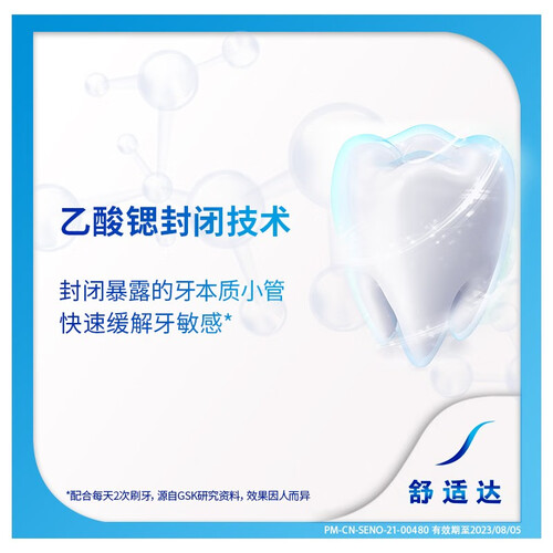 舒适达劲速护理牙膏中的乙酸锶成分与钙类似,可代替牙本质部分流失的钙,并且能够在牙齿表面快速形成保护层,缓解牙本质敏感。