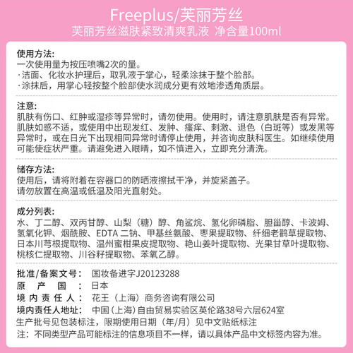 清爽的润肤露易于肌肤吸收不粘腻,多种植物草本精粹结合,补水保湿增强肌肤自身弹力和紧致度,成分温和低敏,让肌肤减轻负担。