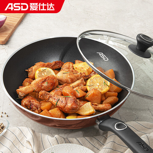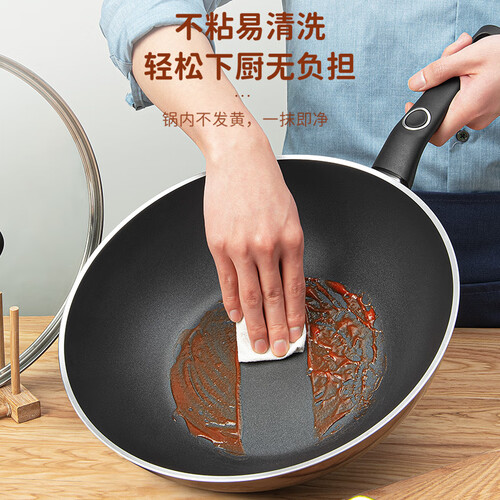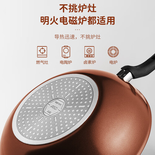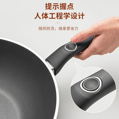 锅身精选铝合金材质制作,导热性能好,受热均匀升温迅速。并且采用厚底薄壁的设计,烹饪时可以有效减少油烟产生。