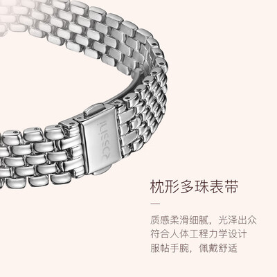 采用纤薄表身设计,轻盈无负担,佩戴舒适自在。多珠实心钢带,表面光滑耐腐蚀,久戴如新。