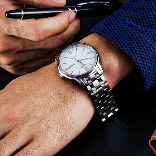 天梭钢带机械男表