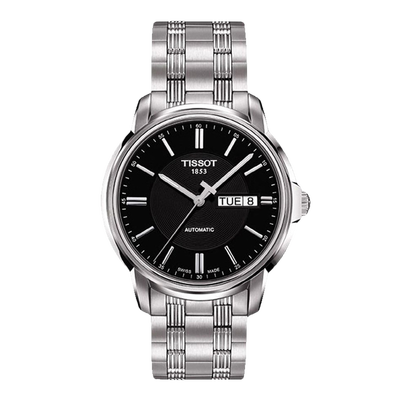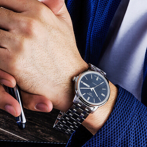 黑色表盘中,logo和双日历装饰,既有较高的品牌辨识度,又具实用性。蓝宝石表镜,减少了进入肉眼的反射光,达到防眩的效果。