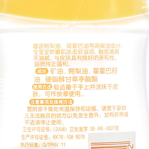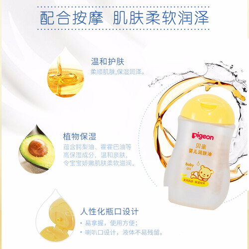 蕴含鳄梨油和霍霍巴油等高保湿成分,温和亲肤,令宝宝娇嫩肌肤柔软滋润。人性化的瓶口设计,易抓握,使用更方便。