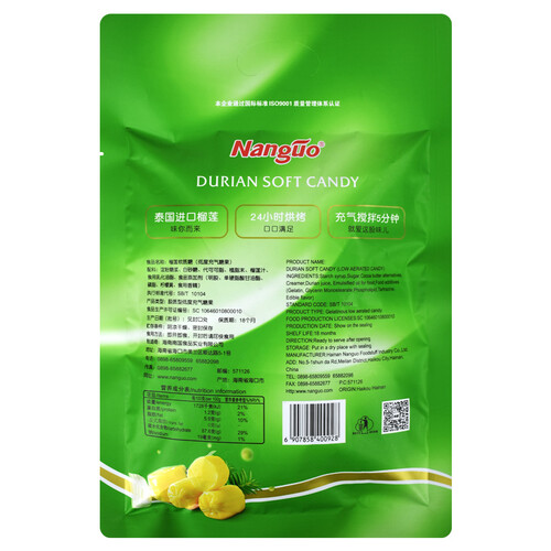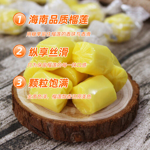 拥有榴莲口味,真材实料,保留了榴莲的香气和味道,让你吃完后口有余香,回味无穷。同时采用透明小包装,颗粒饱满,看着有食欲。