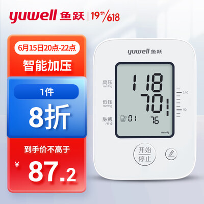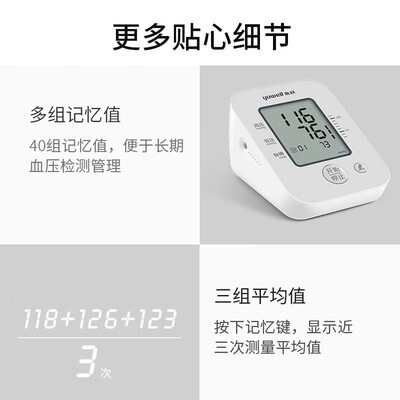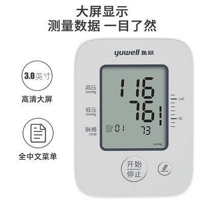 鱼跃家用智能血压仪,组件升级测量更准,适应性更强。高清大屏,测量数据,一目了然。智能一键量血压,爸妈轻松用。低噪音设计,噪音低。
