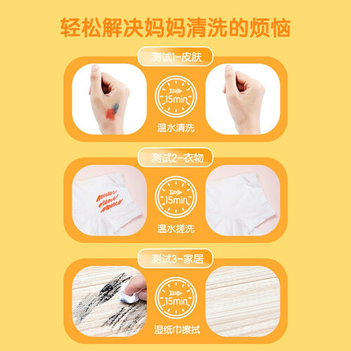 选用可水洗配方,具有较好溶解性,画面色彩鲜艳,画图不费力。甄选优质墨水,避免断触问题,宝宝绘画更流畅。