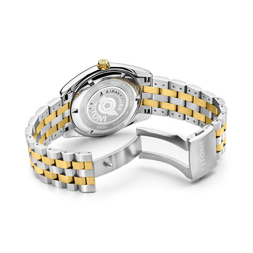 金色表圈设计,丰富视觉看点,富有新意,提升整体美观度。搭载精致罗纹表冠,携刻梅花标志,精致美观,彰显品牌魅力。