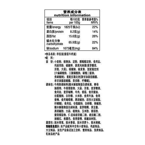 农心方便面香菇牛肉味