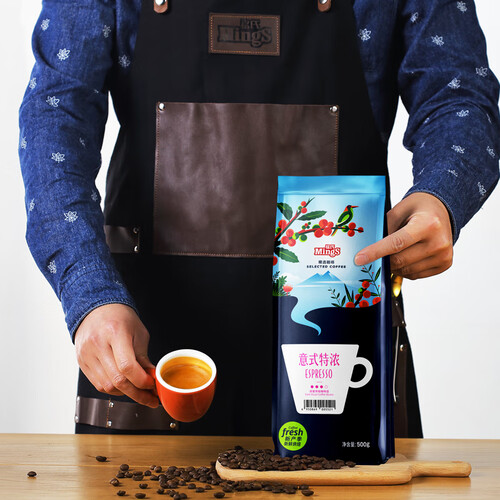 具有500g容量,可以制作多杯咖啡,每天喝上一杯收货美好心情。阿拉比卡豆与罗伯斯塔豆按比例搭配,散发出焦糖和巧克力香味。