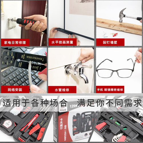 卡夫威尔这款工具箱拥有129件实用工具,各种扳手、钳子、螺丝刀套件只要你用得上它都为你准备好了,能够满足日常家居的需求。