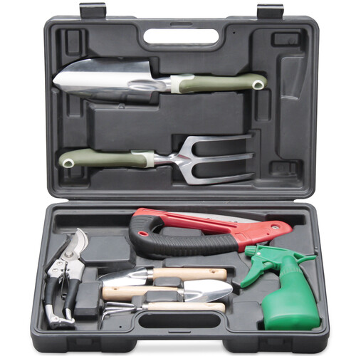 简约大气的黑色工具外箱耐磨耐脏,实用性能高。内置8件常用种植工具,满足对各种植物栽培的需求,使用起来更加方便。