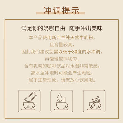 醇香咖啡搭配香甜牛奶,绵密且丰盈的奶沫使口感细腻顺滑,加上中度烘焙制法,中和了酸苦味,口感更均衡。加班熬夜,饮用可提神。