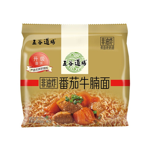 酸甜适口|五谷道场这款番茄牛腩面,也是怕辣星人的首选,蒸工艺、非油炸的面饼,营养健康,柔韧有弹性,番茄味浓、酸甜适口的汤汁,清淡美味,十分好吃!