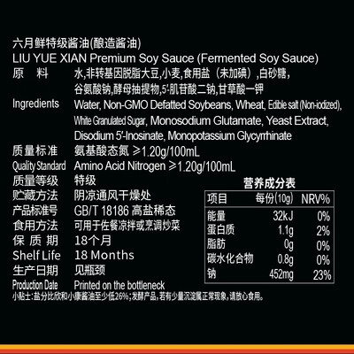 不添加防腐剂,保留酱油的本味,更能凸显食材的本鲜。严选优质粮食,采用高盐稀态酿造法,减少含盐量,但鲜味一点不减。